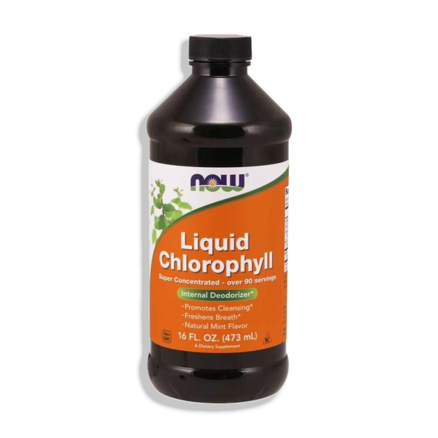 Klorofyll er et grรธnt pigment som produseres naturlig av planter og alger, noe som gir dem deres karakteristiske grรธnne farge. Klorofyll er essensielt for fotosyntese, prosessen der sollys omdannes til kjemisk energi. Klorofyll kan fungere som en frie radikalfjerner. Klorofyll kan bidra til รฅ stรธtte kroppens avgiftningsprosesser og har tradisjonelt blitt brukt som et «indre rensemiddelยซ. NOW Liquid Chlorophyll er et vannlรธselig ekstrakt i form av natriumkobberklorofyllin. Produktet har en naturlig myntesmak.